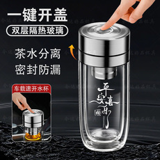 鹅蛋杯双层玻璃杯男士定制百家姓车载商务办公杯茶水分离水晶茶杯