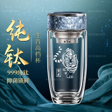 希诺鹅蛋杯钛杯抗菌双层高端玻璃水杯车载商务泡茶杯西诺1916定制