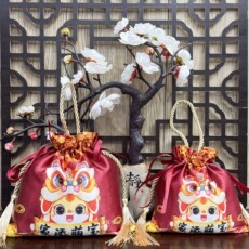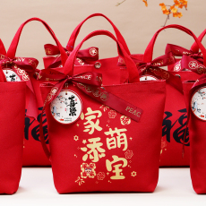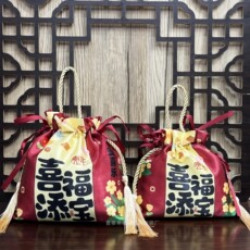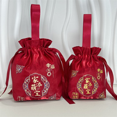 中式满月喜蛋袋子百日宴周岁伴手礼手提回礼袋中国风锦缎喜糖袋子