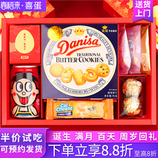 宝宝百日宴满月伴手礼喜饼喜糖礼盒新生儿出生报喜蛋喜面零食回礼