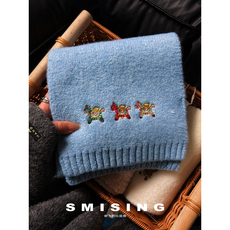 2025新款民族风复古元宝彩色小马刺绣针织围巾秋冬季保暖百搭围脖