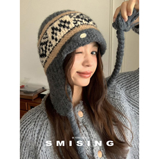 费尔岛复古甜美可爱爱心提花雷锋帽女秋冬季保暖显脸小护耳针织帽