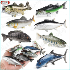 儿童仿真动物模型海洋淡水鱼三文鱼食人鱼金枪鱼鲈鱼飞鱼水母玩具