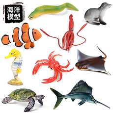 仿真海洋生物动物模型儿童塑胶玩具小鱿鱼螃蟹海星金枪鱼摆件