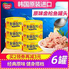 韩国即食原味金枪鱼罐头吞拿鱼6罐装 三明治寿司饭团沙拉材料