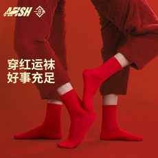 一只鱼2026红袜子本命年男女士秋冬款马年中筒袜结婚情侣圣诞长袜