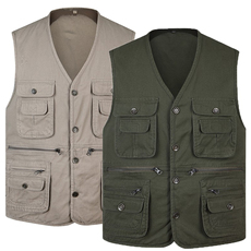 春秋季中老年纯棉多口袋马甲男坎肩爸爸装休闲钓鱼摄影加大码马夹