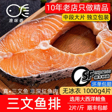 三文鱼排扒中段大片2斤4片大西洋鲑鱼智利进口整条新鲜冷冻顺丰