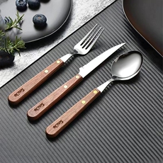 牛排西餐刀叉套装餐具盘子家用不锈钢木柄叉子牛排刀两件套食品级