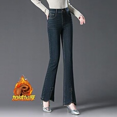 欧洲站烫钻牛仔裤女潮货2022春秋新款高腰修身显瘦小脚长裤