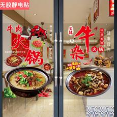 牛杂火锅店玻璃门贴纸餐厅牛骨头牛肚牛尾牛肉店橱窗创意广告装饰