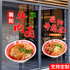 襄阳牛肉面玻璃门广告贴纸牛杂面馆小吃店铺食堂橱窗装饰静电贴画