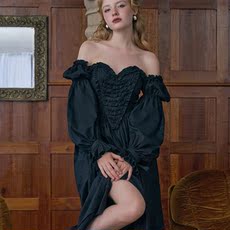 LaceMade 堕落天使 法式古典羊腿袖大摆公主裙黑色棉质连衣裙女秋