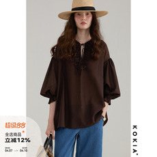 清仓捡漏~飘带开叉设计感长袖白衬衫女秋棉质宽松立领羊腿袖上衣
