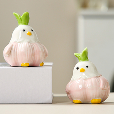 卡通可爱陶瓷蒜鸟摆件办公室桌面装饰品治愈系工位氛围布置小摆设