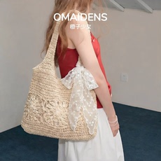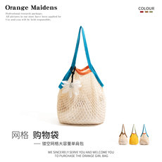 橙子少女沙滩镂空网兜包包夏季新款海边轻便大容量单肩手提编织包