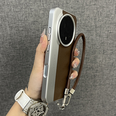 三只鱼【时尚荔枝皮纹相机壳复古棕手提绳】适用荣耀magic8pro/magic8手机壳新款商务潮牌防摔全包保护套男女