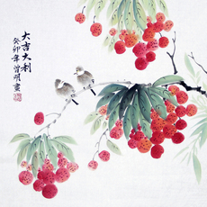 曾明手绘真迹国画花鸟画玄关餐厅挂画葫芦葡萄荷花紫藤柿子荔枝画