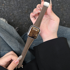 iserisewatch适用iWatch11表带applewatchs9苹果手表10代荔枝纹头层牛皮SE女款41mm磁吸扣Ultra高级s6/7秋冬