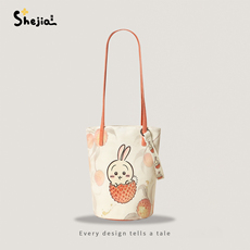 格调studio多巴胺荔枝纹皮水桶包包女包2026新款手提斜挎包托特包