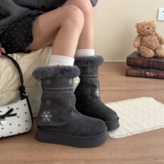 荔枝公园费尔岛毛毛厚底雪地靴女款2025新款冬季加绒加厚棉鞋增高