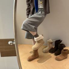 冬日小暖炉芒果头小熊两穿雪地靴女冬季爆款加绒加厚皮毛一体棉靴