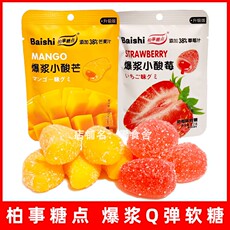 柏事糖点爆浆小酸芒小酸莓软糖芒果味草莓零食休闲糖果小包装22g