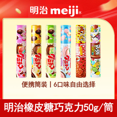 meiji明治小糖果巧克力青提芒果草莓味橡皮糖夹心50g*6筒儿童零食