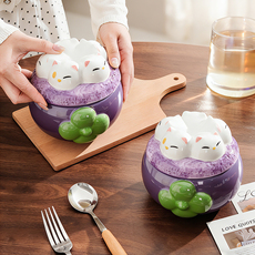 可爱山竹陶瓷泡面碗带盖双耳大号汤碗学生宿舍螺蛳粉碗高颜值餐具