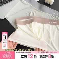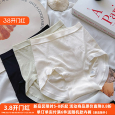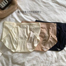 3条【蚕丝裆蜜桃爱心臀】夏季冰丝无痕内裤女中腰包臀舒适三角裤