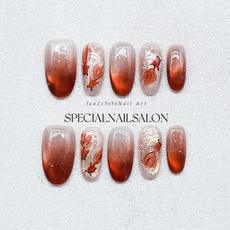 【好运锦鲤】纯手工穿戴甲晕染琥珀秋冬2026新款杏仁甲高级感美甲