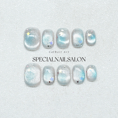 【星海影梦】纯手工穿戴甲晕染细闪冰透蓝星星猫眼高级感显白美甲
