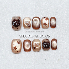 【暖暖猫眸】纯手工穿戴美甲2026新款焦糖色星星猫眼可爱指甲贴片