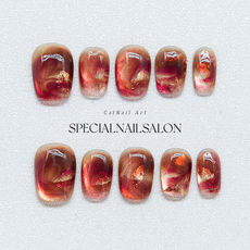【日落霓虹】纯手工穿戴甲秋冬晕染美拉德爆闪猫眼显白高级感美甲