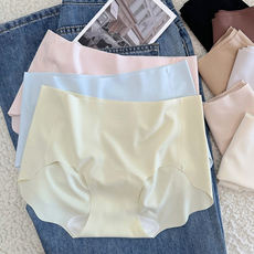 裸感生理裤加长加宽防侧漏纯棉内裤女无痕精梳棉中腰包臀三角裤