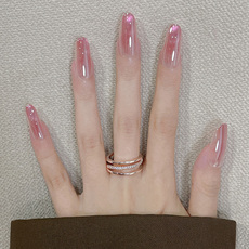 海莉同款裸粉色电镀猫眼穿戴甲中长款2026新款轻奢高级感桃腮流霞