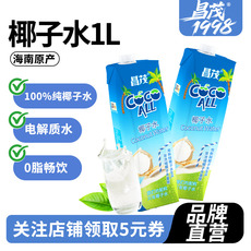 海南100%纯椰子水椰青水果汁饮料含电解质饮品咖啡商用原料椰汁1L