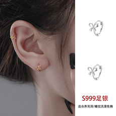 S999银针纯银耳钉女养耳洞耳环气质足银耳骨钉耳棒设计感耳饰发炎