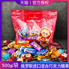 进口俄罗斯混合糖巧克力散装多种口味夹心牛奶糖果500g年货喜糖