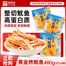 来伊份黄金烤鱿鱼丝500g整切即食海味高蛋白手撕休闲零食来一份