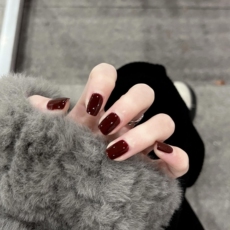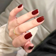 新年美甲贴片车厘子色晕染显白高级百搭假指甲成品新娘孕妇穿戴甲