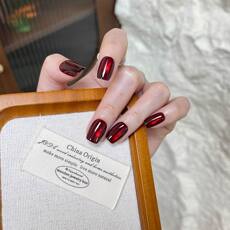【酒红车厘子】显白酒红猫眼短款穿戴甲日常百搭美甲