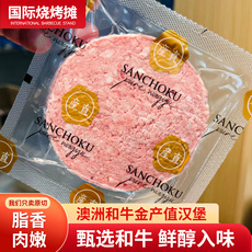 澳洲和牛谷饲牛肉汉堡饼快手早餐新鲜进口边角肉牛肉饼125g/个