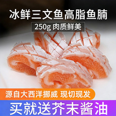 挪威冰鲜三文鱼高脂鱼腩250g海鲜鱼日式料理新鲜美味
