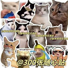 新款直销62张热门歪嘴小猫贴纸沙雕表情包喜猴手机壳笔记本个性防