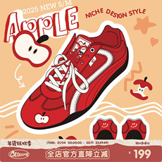 【emoji-lab系列】猫与沙发/苹果鞋红色薄底赛车鞋新款情侣德训鞋
