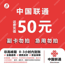中国联通 手机话费充值50元 全国通用自动充值快速到账