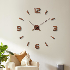 胡桃木数字时钟表复古简约客厅挂钟中式木纹墙贴壁钟 diy静音钟表