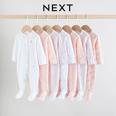英国NEXT进口婴儿长袖连体衣新生家居爬服男女宝拉链奶瓶纯棉睡衣