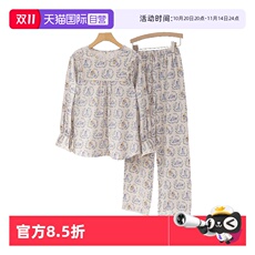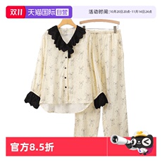 【自营】toratani纯棉双层纱柔软优雅法式翻领花边女士家居服套装
